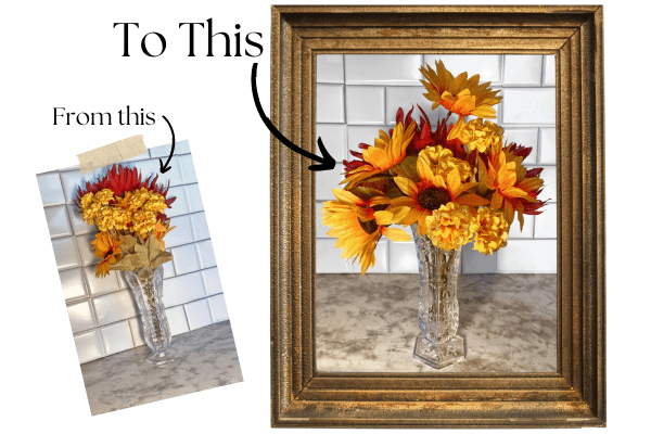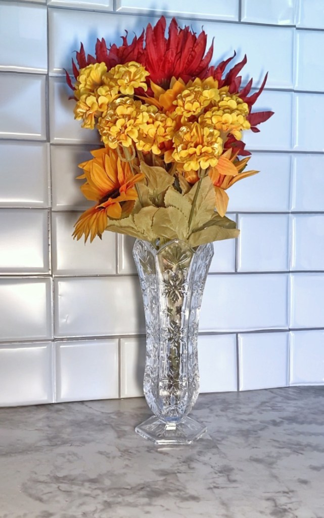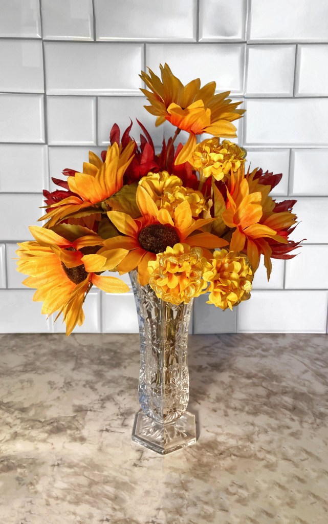 But even fake flowers can be expensive! Especially when you’re picking them up from the craft store where one stem of something realistic looking can run you $10-15! I don’t know about you, but that’s a bit out of the budget these days, considering I still have to, you know, eat. If you’re not catching the craft store on one of those ultra-low sales days, you may turn to the Dollar Tree (or a similar dollar store). Lured by the wall of $1.25 bunches, you may even pick a few up, feeling very virtuous. She’s a thrifty diva, you may whisper to yourself as you head home, smugly thinking about how many compliments you’ll get when friends and family see your proudly displayed bouquet. “It cost less than $5,” you’ll say, sipping from an iced latte with an extra pump (you earned a little treat for saving some money!). But then you arrive home, grab a vase, plop your DT flowers inside and are met with this: