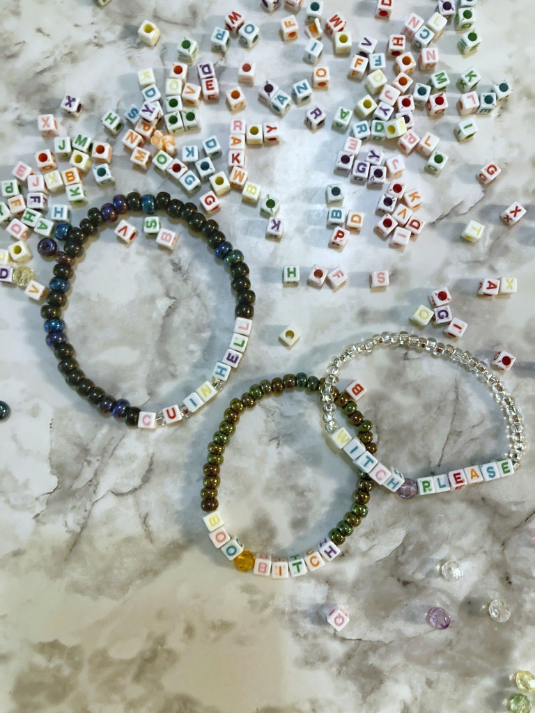 Halloween, bitches! Now listen, you can absolutely make your Halloween-themed bracelet something a bit more kid-friendly (like having it say “spooky cutie” instead of “c u in hell”) but that’s entirely up to you and your friends’ wrists, I believe.