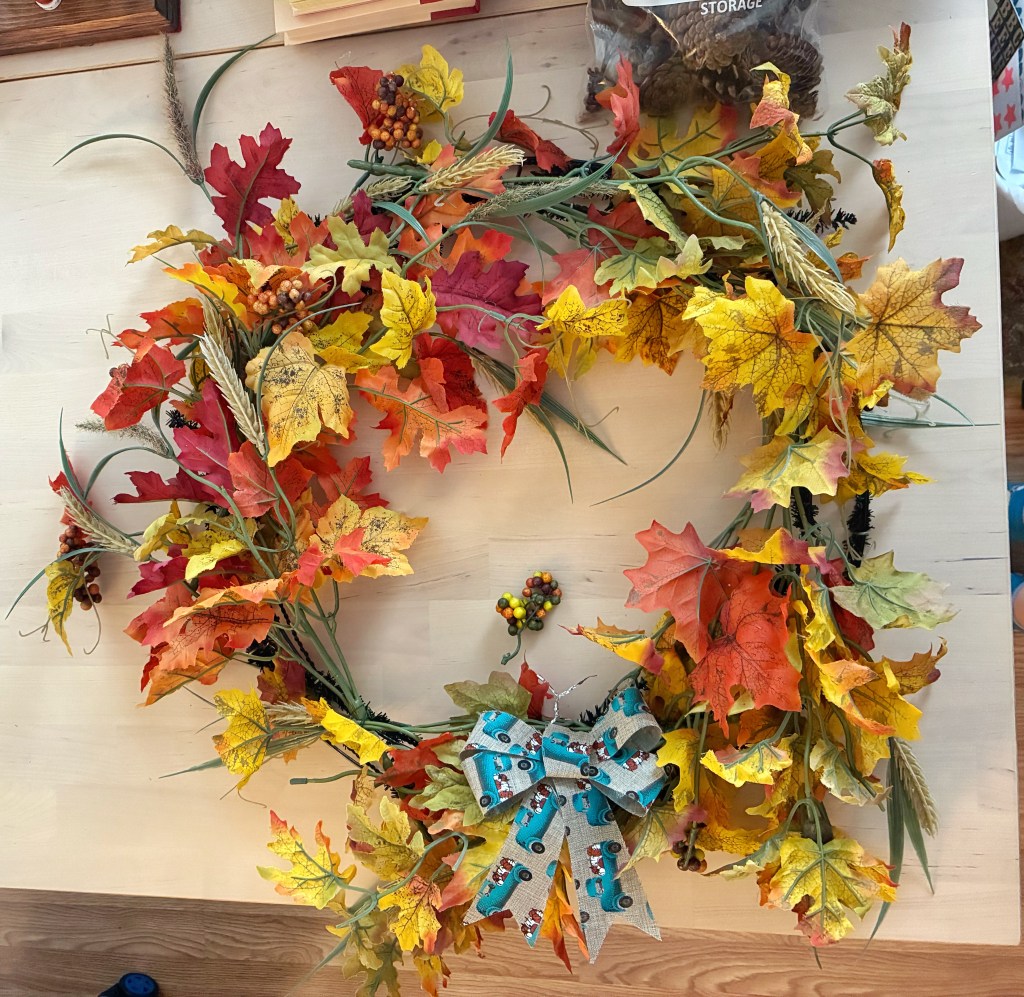 • I used a pre-made bow from the dollar store for the bottom of my wreath. This is optional. You can also use the wire edged ribbon to make a bow yourself, if that’s something you prefer!