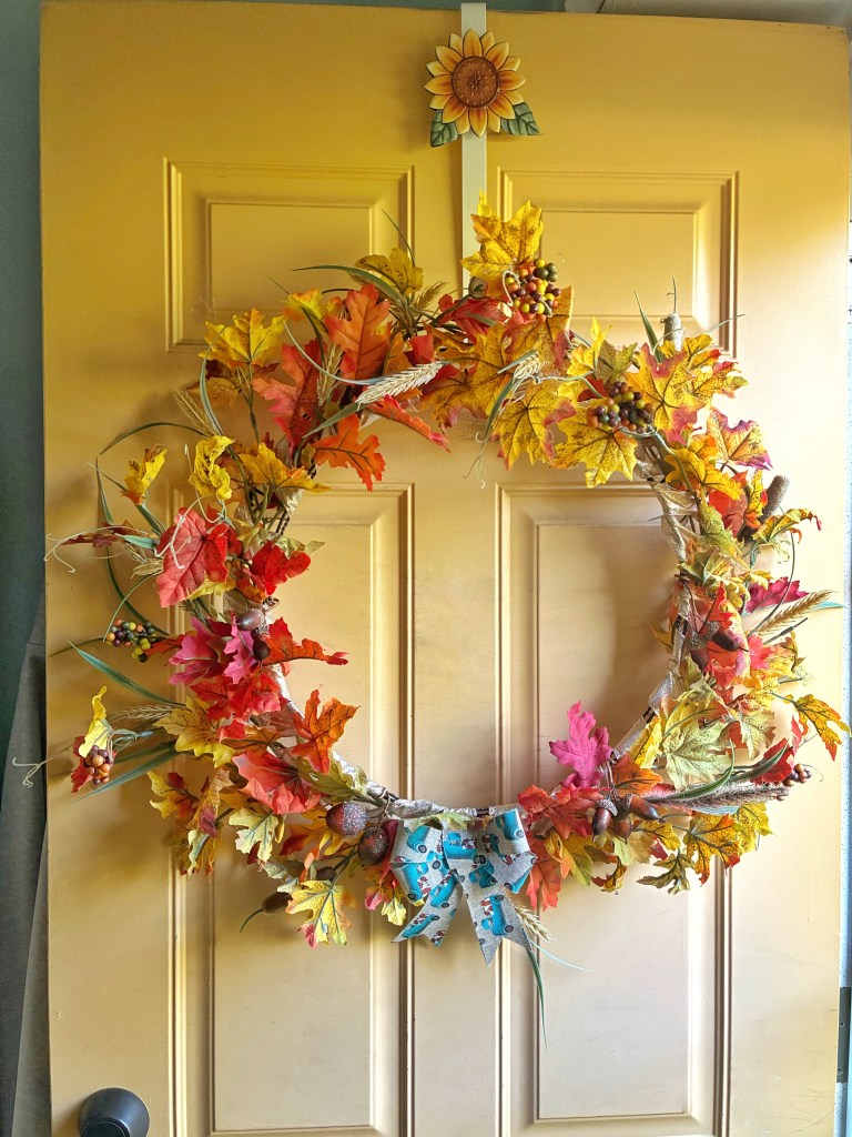 Now that’s better! I gave this wreath a makeover, and below I show you how I did it. But if you don’t have a sad old droopy fall wreath, you can still follow along and learn how to make your own wreath the right way from the start!